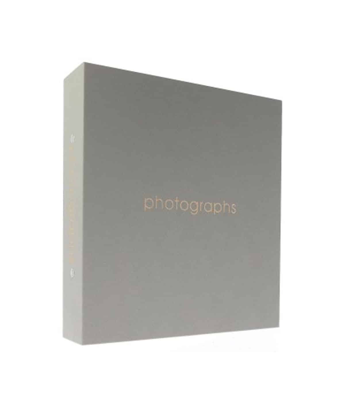 Мінімалістична сіра обкладинка з делікатним золотим написом photographs виглядає сучасно та стримано — альбом легко впишеться в будь-який інтер’єр.