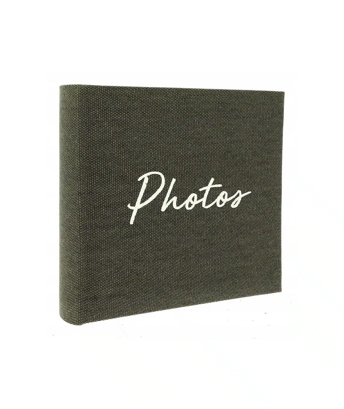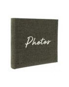 Темно-зелена тканинна обкладинка з білим написом Photos виглядає елегантно та універсально, роблячи цей альбом чудовим варіантом для будь-якої колекції — від сімейних архівів до подорожей чи весільних фото. Завдяки сучасному дизайну він стане не лише сховищем спогадів, але й вдалим подарунком.