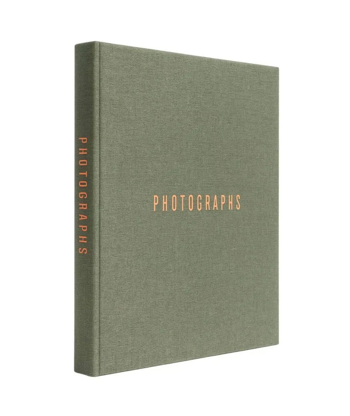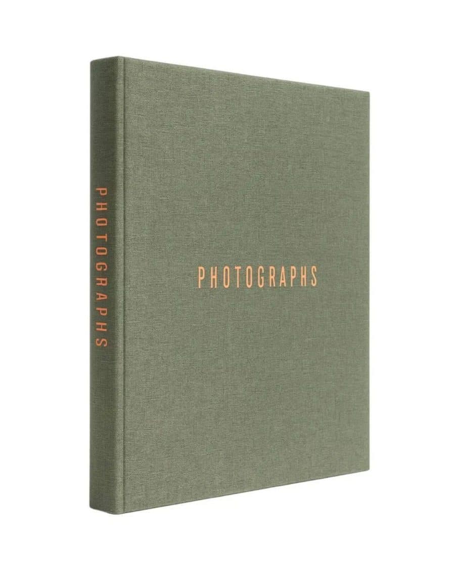 Текстурна поверхня обкладинки імітує натуральну тканину, що робить альбом дуже приємним на дотик. На передній частині та на корінці розміщено лаконічний напис “PHOTOGRAPHS” теплого мідного відтінку. Завдяки напису на торці, цей альбом буде стильно виглядати на вашій книжковій полиці, нагадуючи колекційне видання.