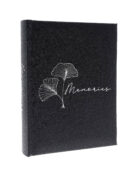 Чорна обкладинка з приємною фактурою прикрашена білим тисненням у вигляді витончених листків гінкго та напису Memories. Завдяки лаконічному дизайну альбом виглядає сучасно й водночас універсально, що робить його чудовим вибором як для сімейних архівів, так і для подарунка близьким людям.