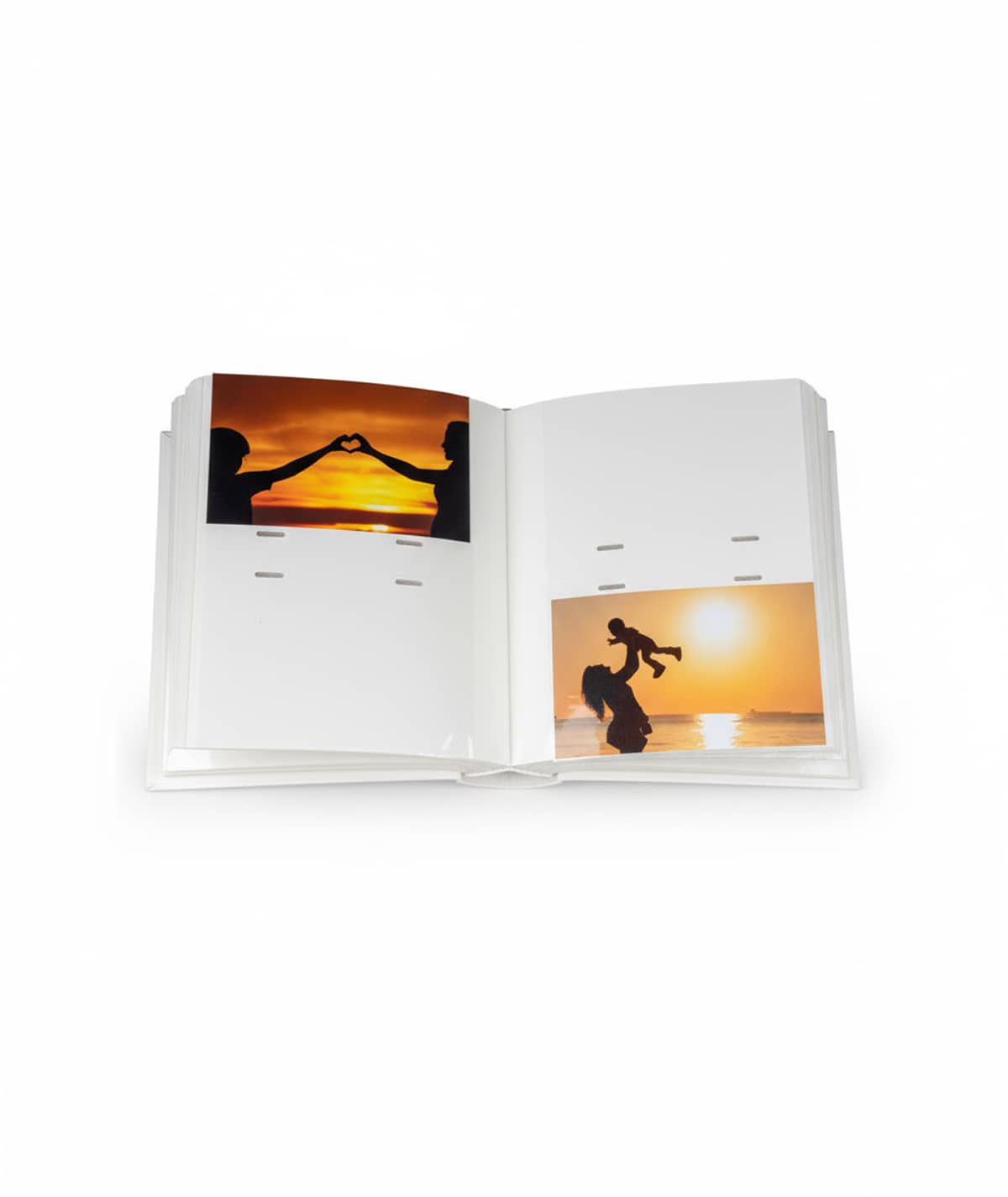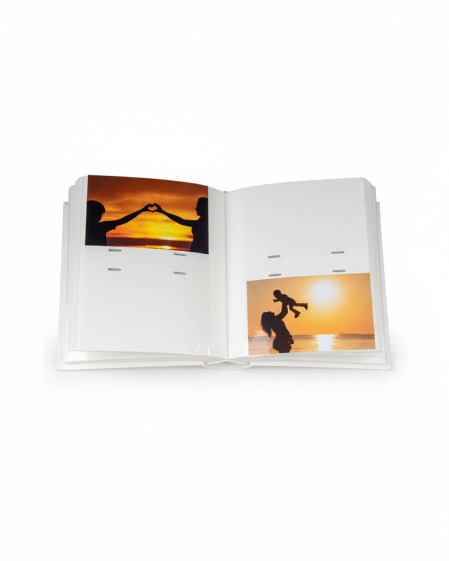 Вміщує 200 фотографій формату 10×15 см, які вставляються в прозорі кишеньки. Сторінки виконані з білого (або світло-кремового) паперу з вкладеними кишеньками, що захищають знімки від пилу, подряпин та вологи. Кожна фотографія може бути підписана — залиште дату, підпис чи короткий коментар біля знімка.