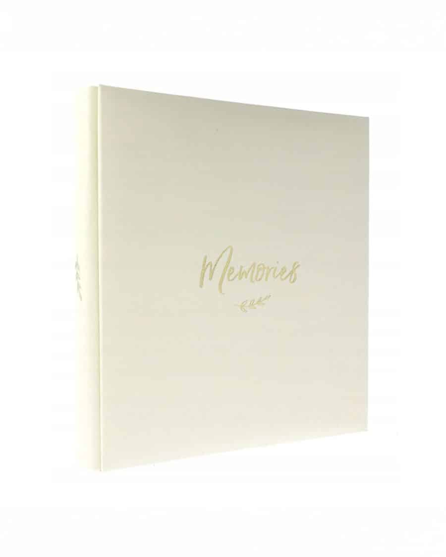 Фотоальбом Gedeon SB46500 “Memories” на 500 фото 10×15 см із чорними сторінками. Молочно-біла обкладинка з ніжним золотистим тисненням виглядає витончено й елегантно — чудовий вибір для зберігання найцінніших моментів життя.