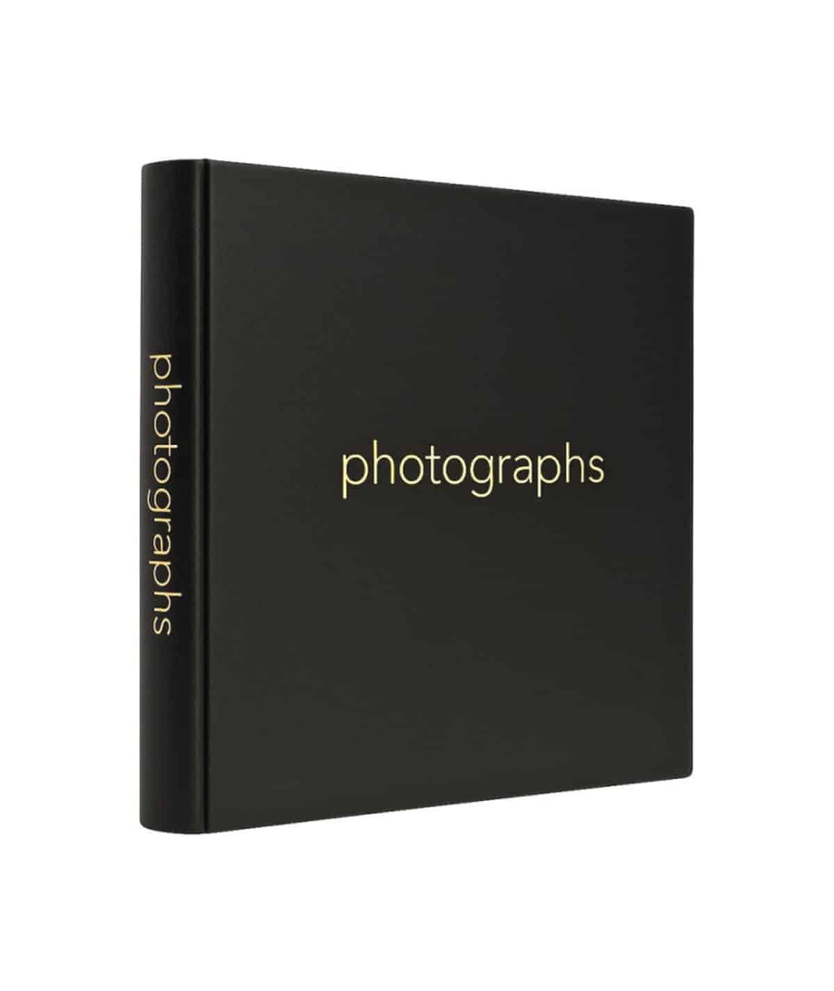 Фотоальбом Gedeon SB46500 ART181 “Photographs” на 500 фото 10×15 см із чорними поліпропіленовими сторінками. Стильна матово-чорна обкладинка з золотистим тисненням створює елегантний, сучасний вигляд і робить альбом гармонійним елементом будь-якого інтер’єру.