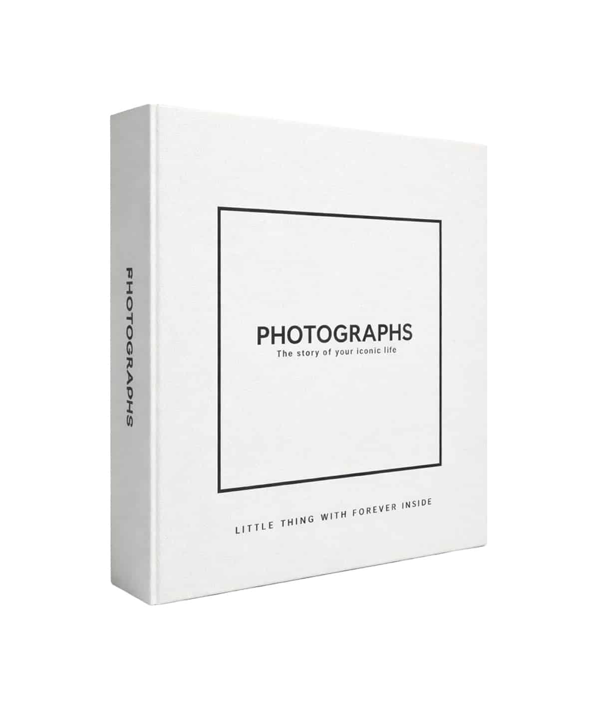Концепція дизайну базується на естетиці «Iconic life» (Знакове життя). Напис у центрі «PHOTOGRAPHS: The story of your iconic life» та зворушлива цитата внизу «Little thing with forever inside» («Маленька річ із вічністю всередині») налаштовують на особливий лад під час кожного перегляду. Чорний напис на білому корінці дозволяє альбому стати стильним акцентом на будь-якій полиці.