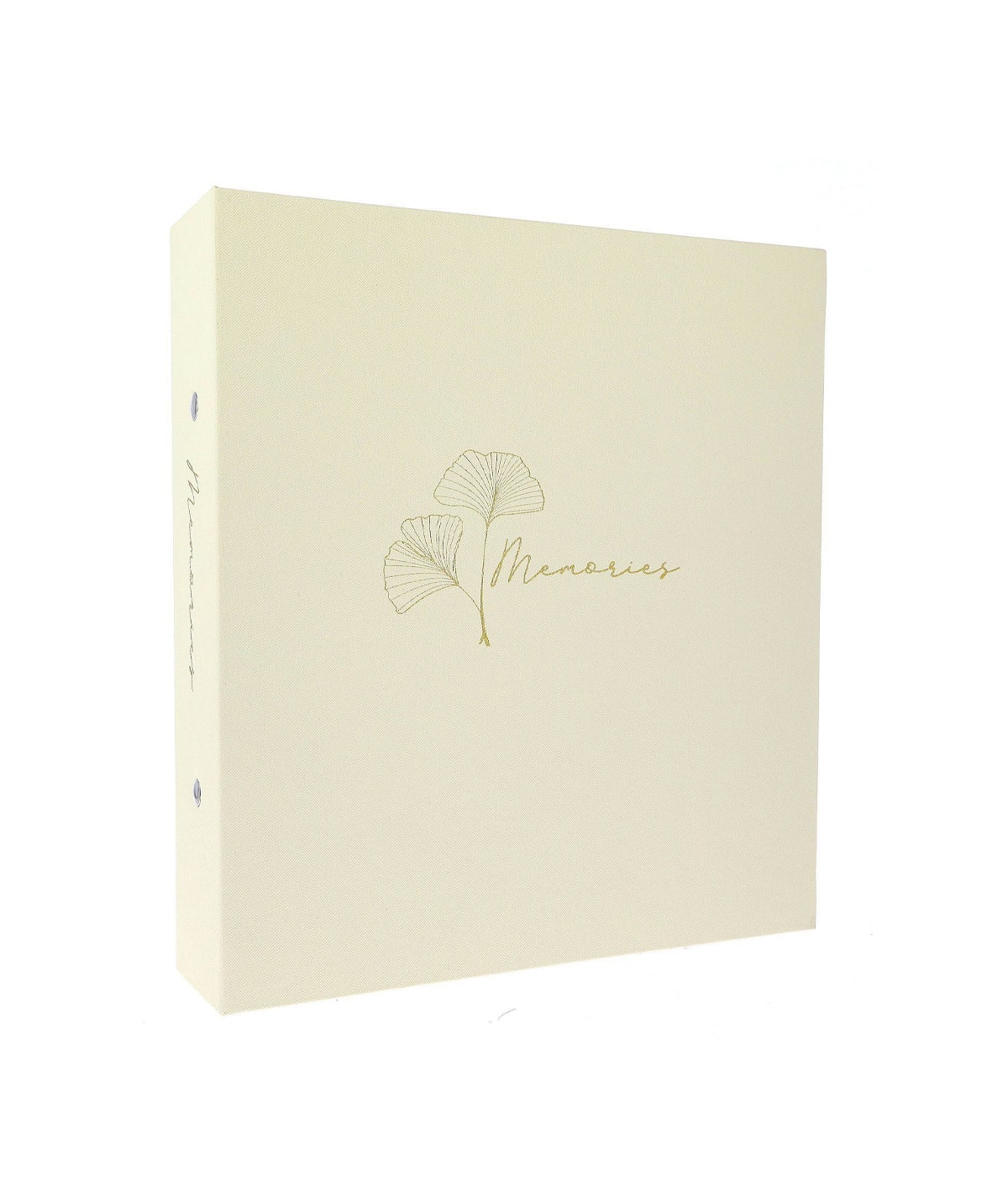 Обкладинка має приємну на дотик текстильну фактуру. Центральною прикрасою дизайну є витончене золотисте тиснення у вигляді листя гінкго — символу стійкості та довголіття, що дуже символічно для збереження історії роду. Напис «Memories» на лицьовій частині та корінці додає виробу преміальної завершеності.