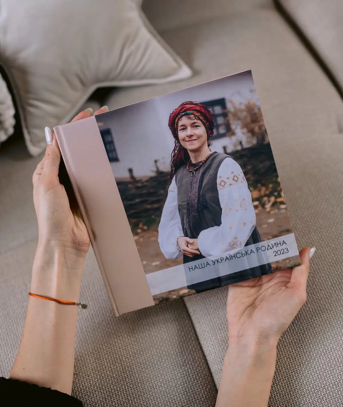 SlimBook має міцну фотообкладинку, що додає елегантності та захищає ваші спогади. На фотообкладинці можна надрукувати будь яке зображення або напис на книзі будь якого кольору. Завдяки цьому, фотокнига стає чудовим вибором для важливих моментів вашого життя – від весільних фото до сімейних святкувань.