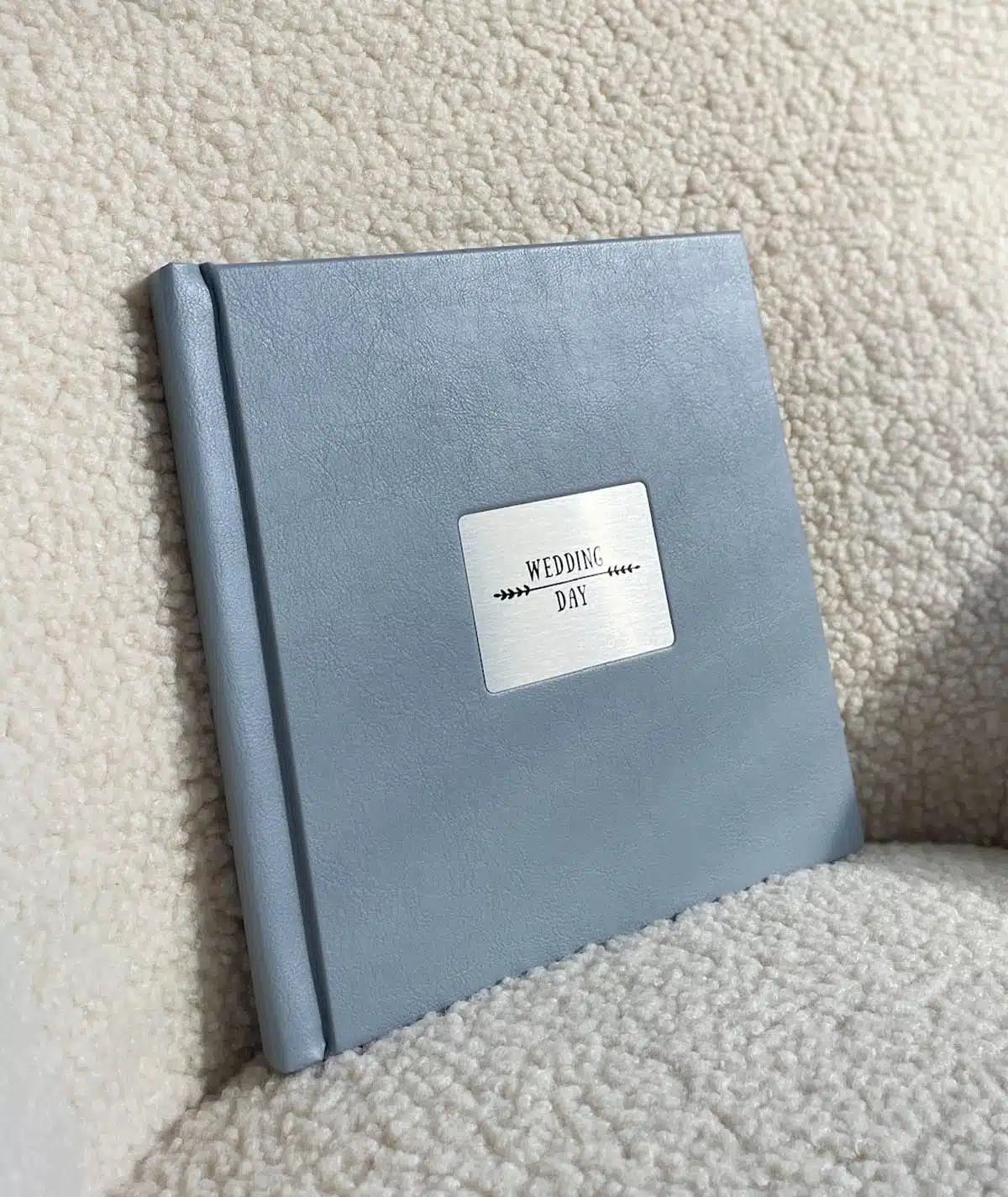 Фотокнига SlimBook з персоналізованим шильдом – це стильний спосіб зберегти особливі моменти. Обкладинка може бути виготовлена з тканини або шкірзаму в різних кольорах. На металевому шильді можна нанести будь-який напис, що додає книзі унікальності. Якісний друк і міцні сторінки гарантують довговічність ваших спогадів.